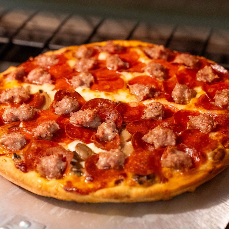 Sausage, Pepperoni, Ground Meat, Ham, Anchovies, Meatballs • [Real Bacon: +$3.25/4 cut and +$4.25/8 cut]